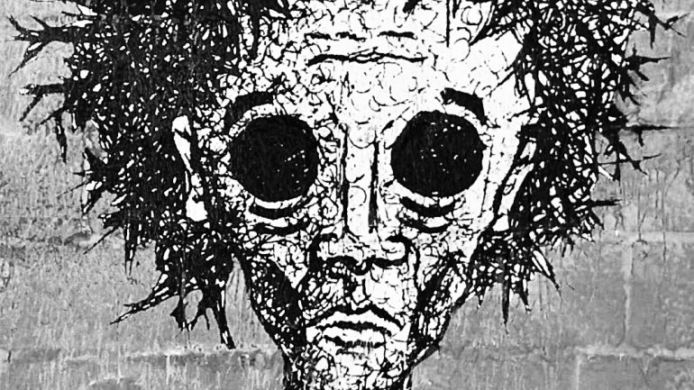 Ein gemaltes Bild von einer Familie an der Wand eines zerstörten Hauses, auf dem ein Rabe sitzt. Ein Mädchen gießt eine Blume, die aus einer Bombe wächst. Eine überdimensionierte Bombe an einer Wand, an deren Spitze ein Friedenszeichen befestigt ist. Einige seiner Motive erinnern an den Künstler Banksy, oft wird er mit ihm verglichen. Mit seiner Kampagne „Faces of War“ werden seine Motive so unmittelbar, dass es schmerzt: Das erste Motiv der Reihe zeigt drei Mal ein ausgemergeltes Gesicht, statt Augen blicken schwarze Löcher ins Nichts – die Trilogie von Krieg, Hunger und Krankheit.